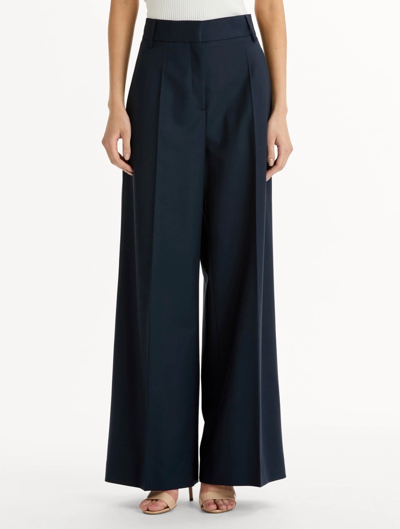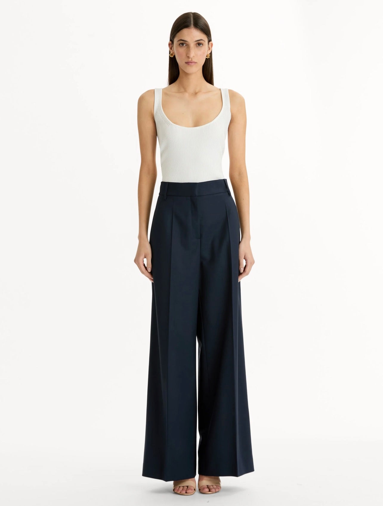 Refined tailoring meets effortless elegance in these Navy Blue Wide Leg Trousers. Designed with a structured high waist and a clean tailored silhouette, these trousers create a flattering elongated look. The wide-leg cut adds modern sophistication while allowing comfortable movement throughout the day.